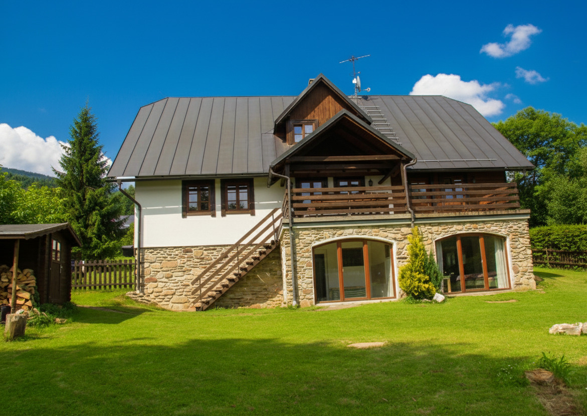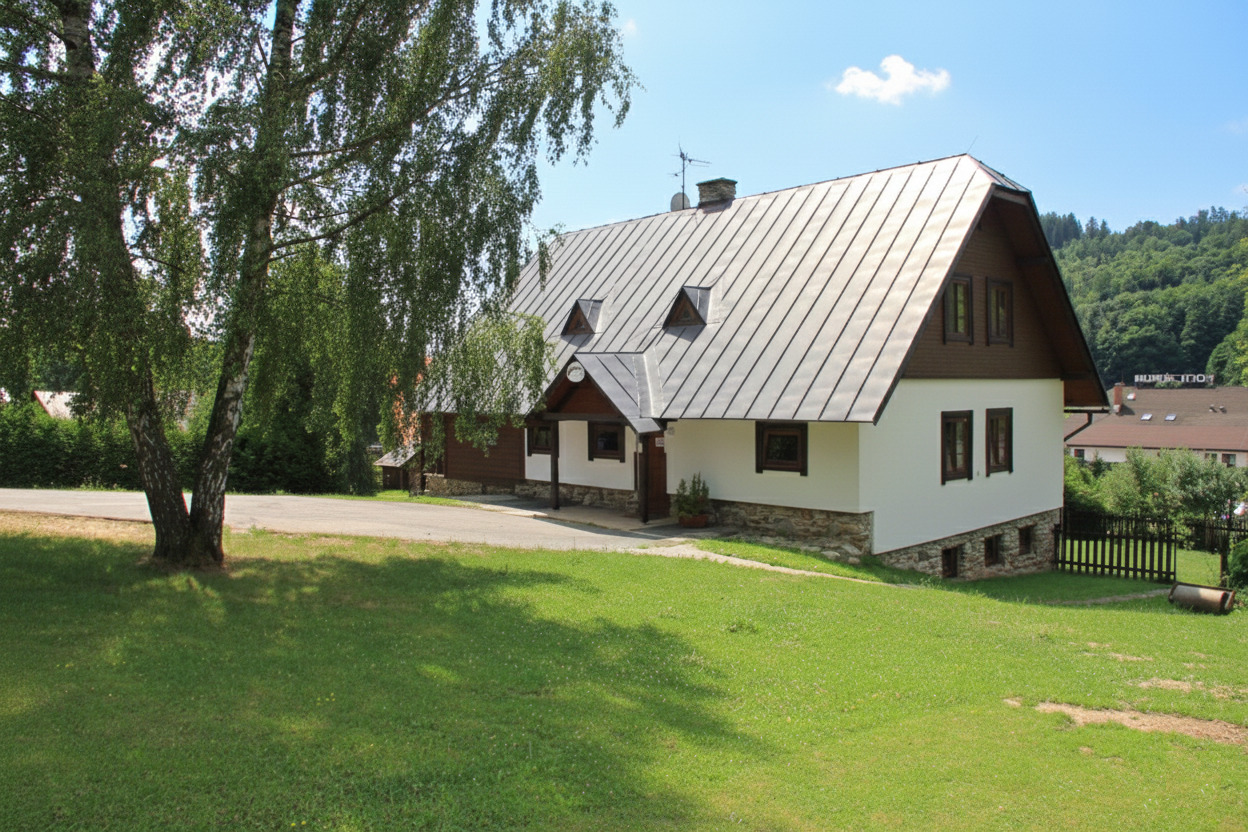 Velká atraktivní chalupa s wellness místností (finská sauna, bazén SPA) a hernou, 500 m od lyžařského vleku, 3 km od kabinové lanovky na Černou horu a 7 km od Janských Lázní v Krkonoších.
