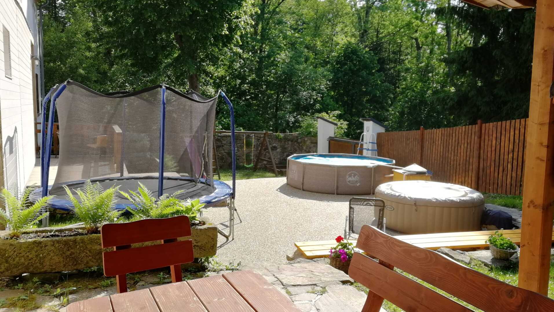 - dětský koutek (domeček, skluzavka, houpačky, trampolína, pískoviště)