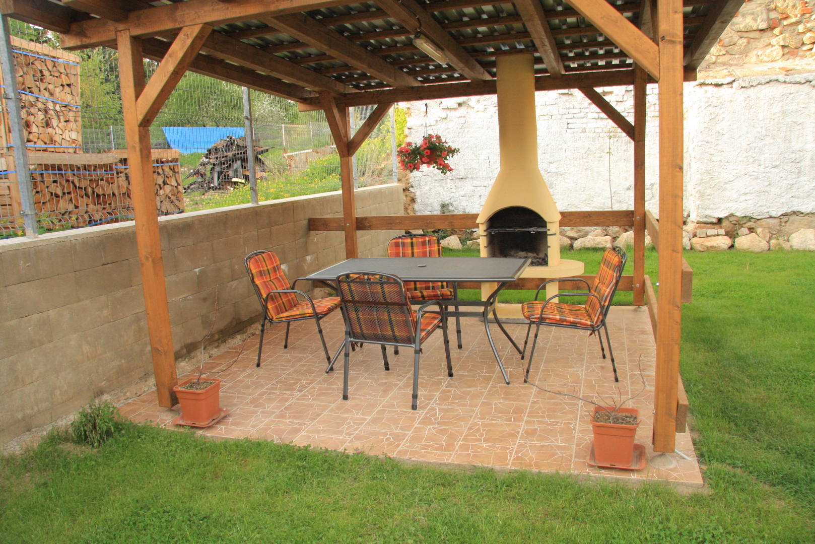 - zastřešené venkovní posezení s osvětlením a s krbem