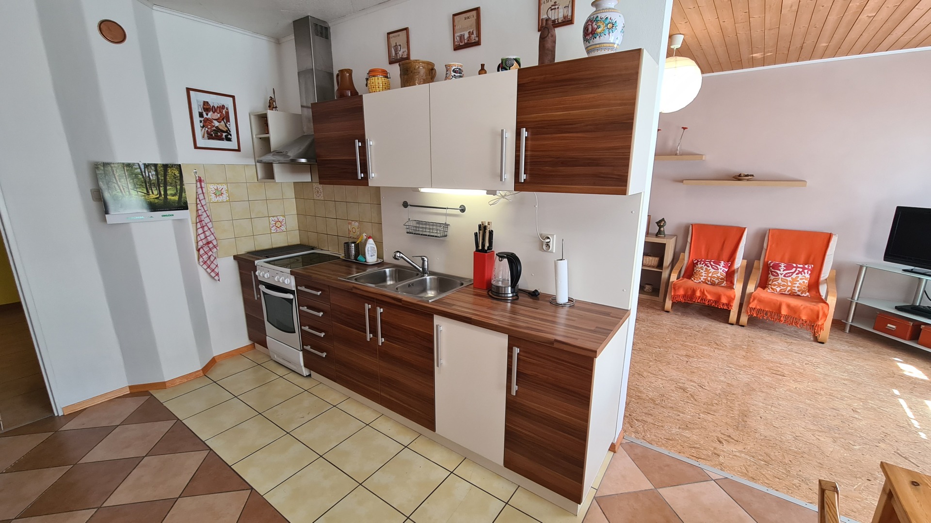 - obývací pokoj s LCD - DVD a 2 lůžky (rozkládací pohovka)