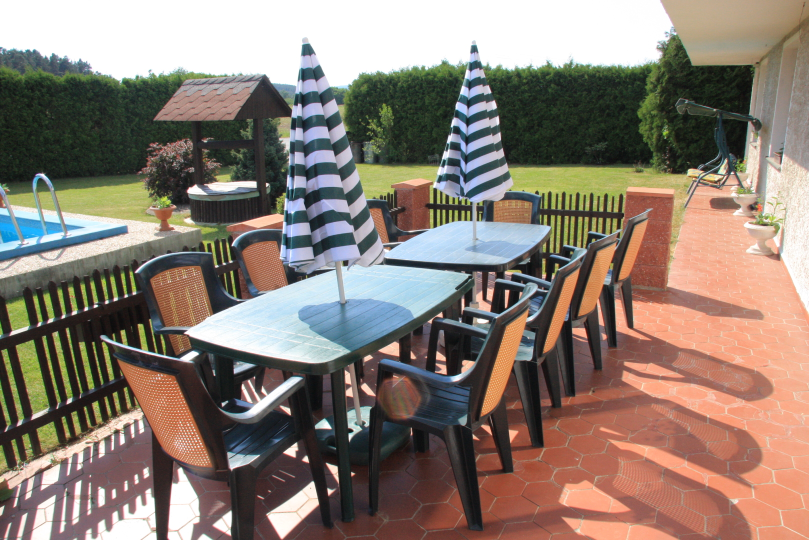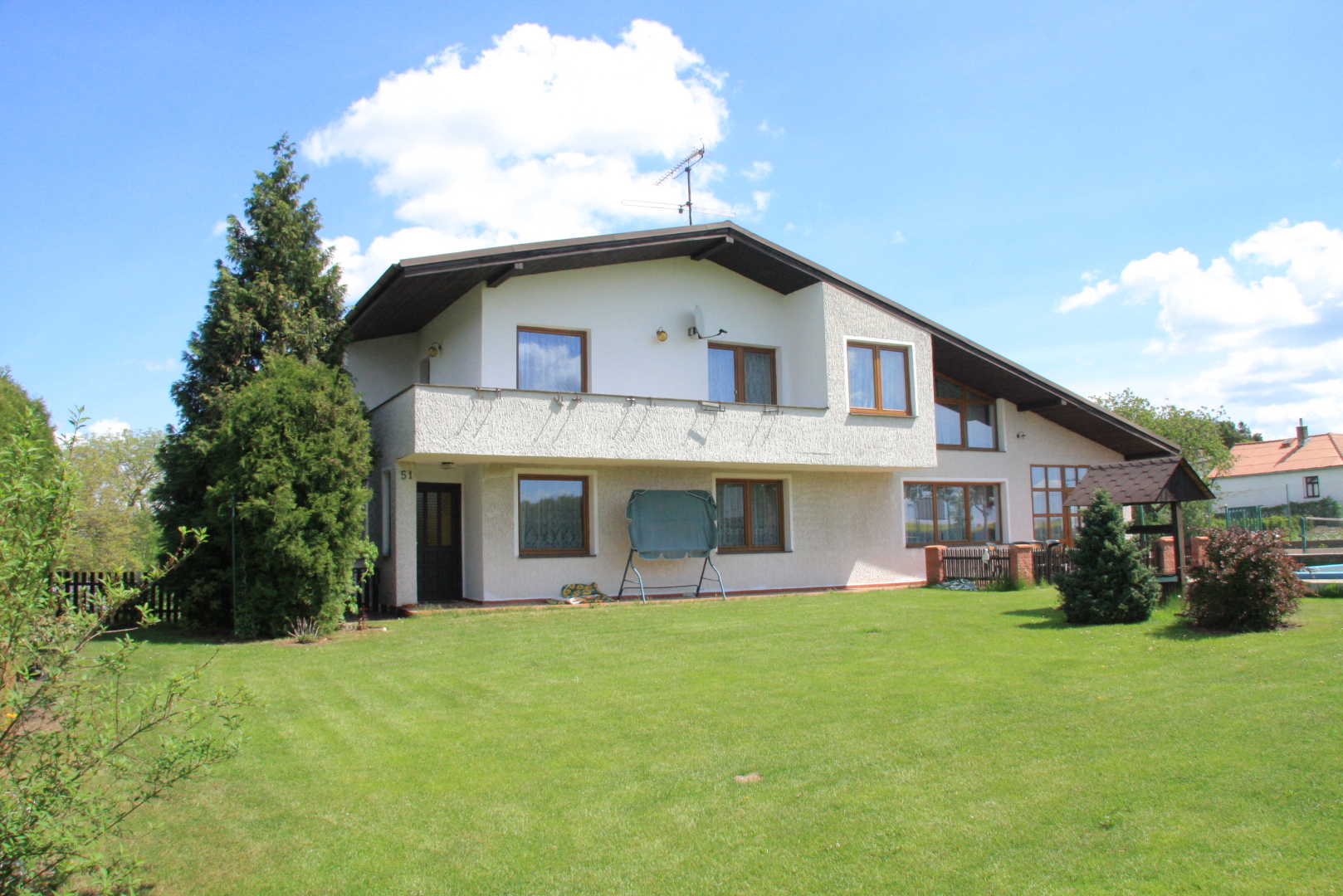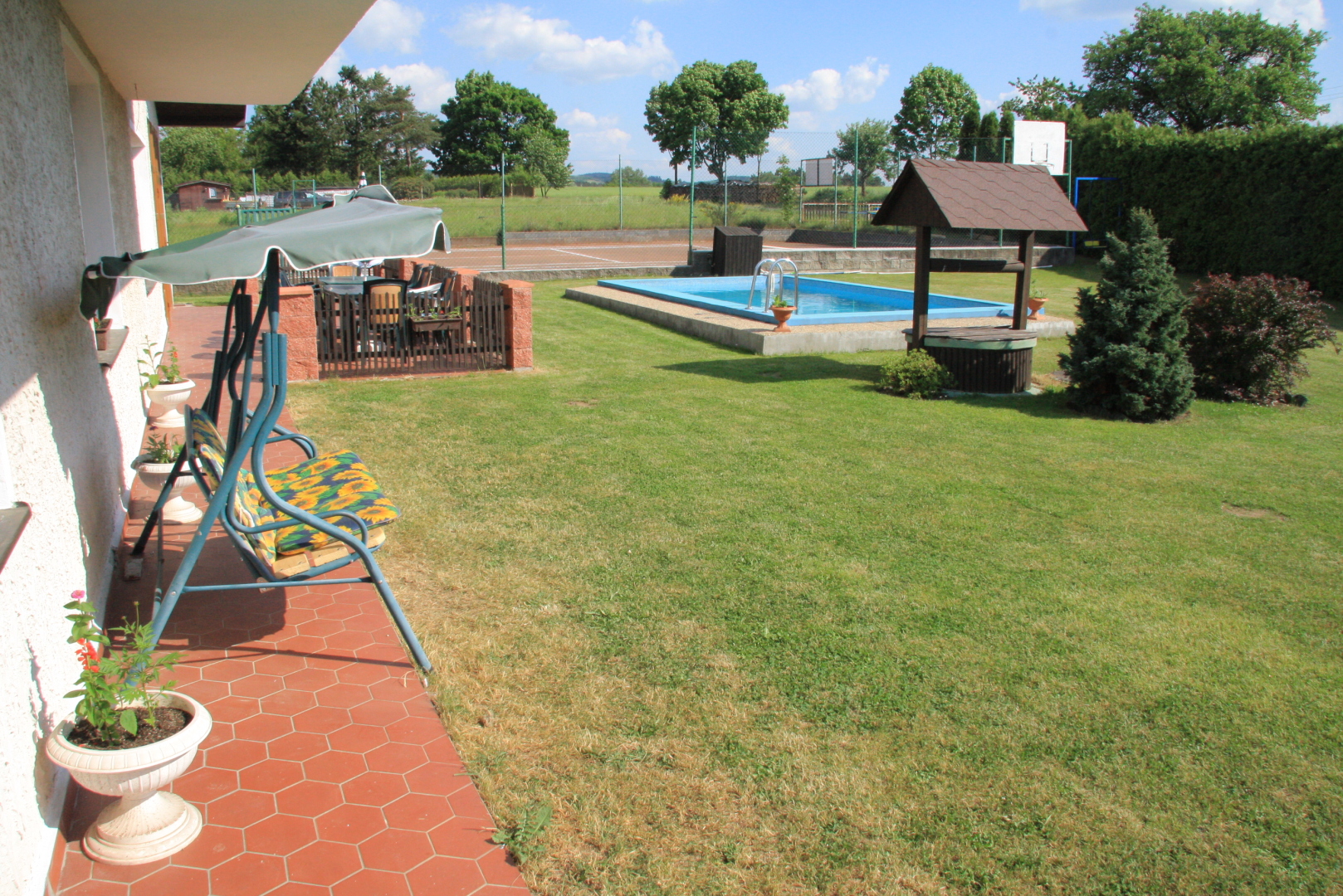 Velmi atraktivní prostorný rekreační domek s venkovním zapuštěným bazénem a tenisovým kurtem, 3 km od vodní nádrže Orlík a 25 km od Zvíkovského Podhradí v jižních Čechách.