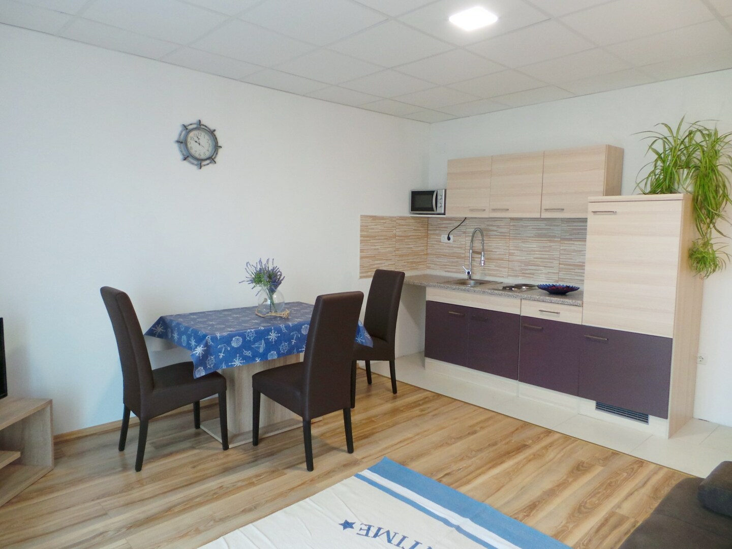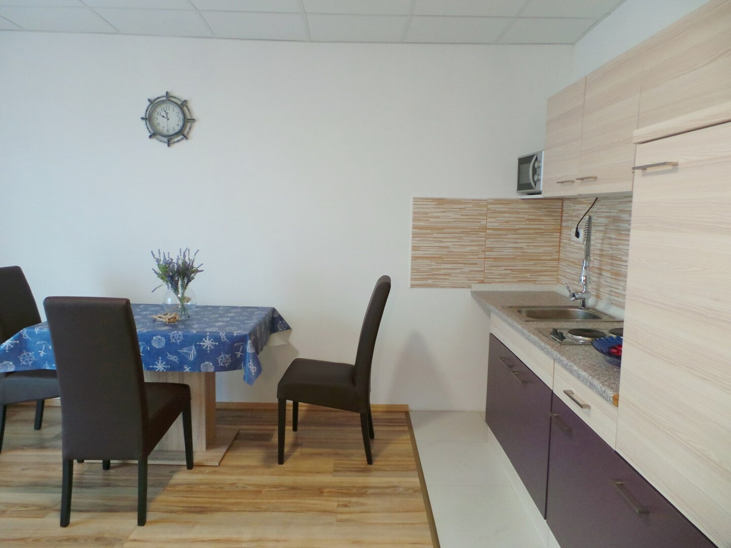 Vybavený kuchyňský kout (sklokeramická varná deska, digestoř, lednice s mrazícím boxem, mikrovlnná trouba, kávovar, toustovač, rychlovarná konvice), obývací pokoj s jídelním koutem, TV+SAT, 2 přistýlkami a s přístupem na terasu s výhledem na moře, 2 ložnice (2/2), 2x koupelna se sprchou a WC. Klimatizace za poplatek. Volné prostranství, gril. Parkování u objektu, domácí zvíře ne. WI-FI připojení k internetu.