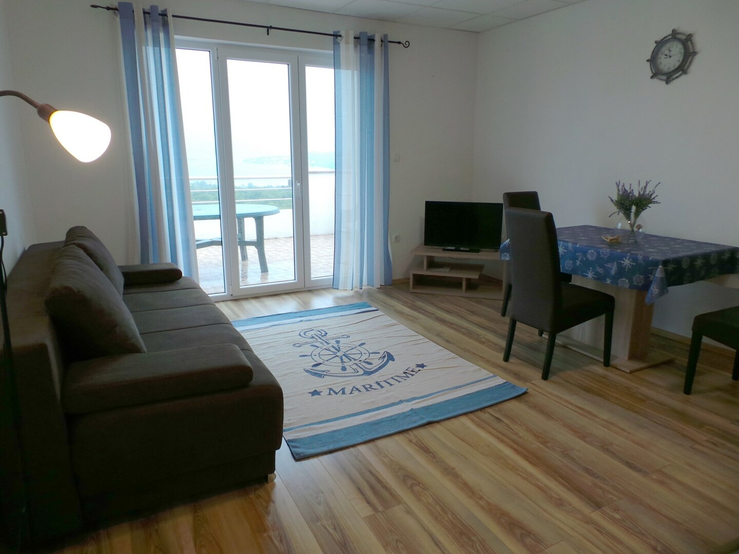 Útulný apartmán v patře rekreačního domu s výhledem na moře na okraji obce, 2 km od obce Čižiči na ostrově Krk v Chorvatsku.