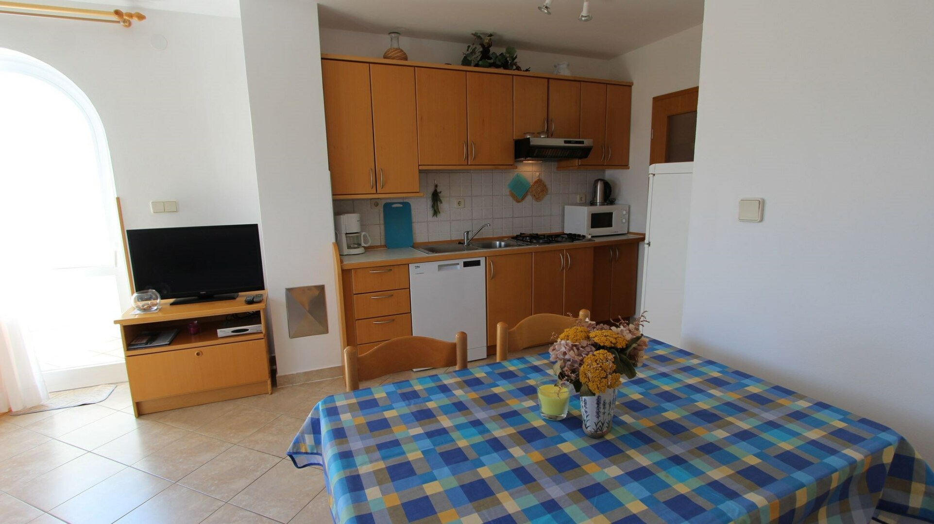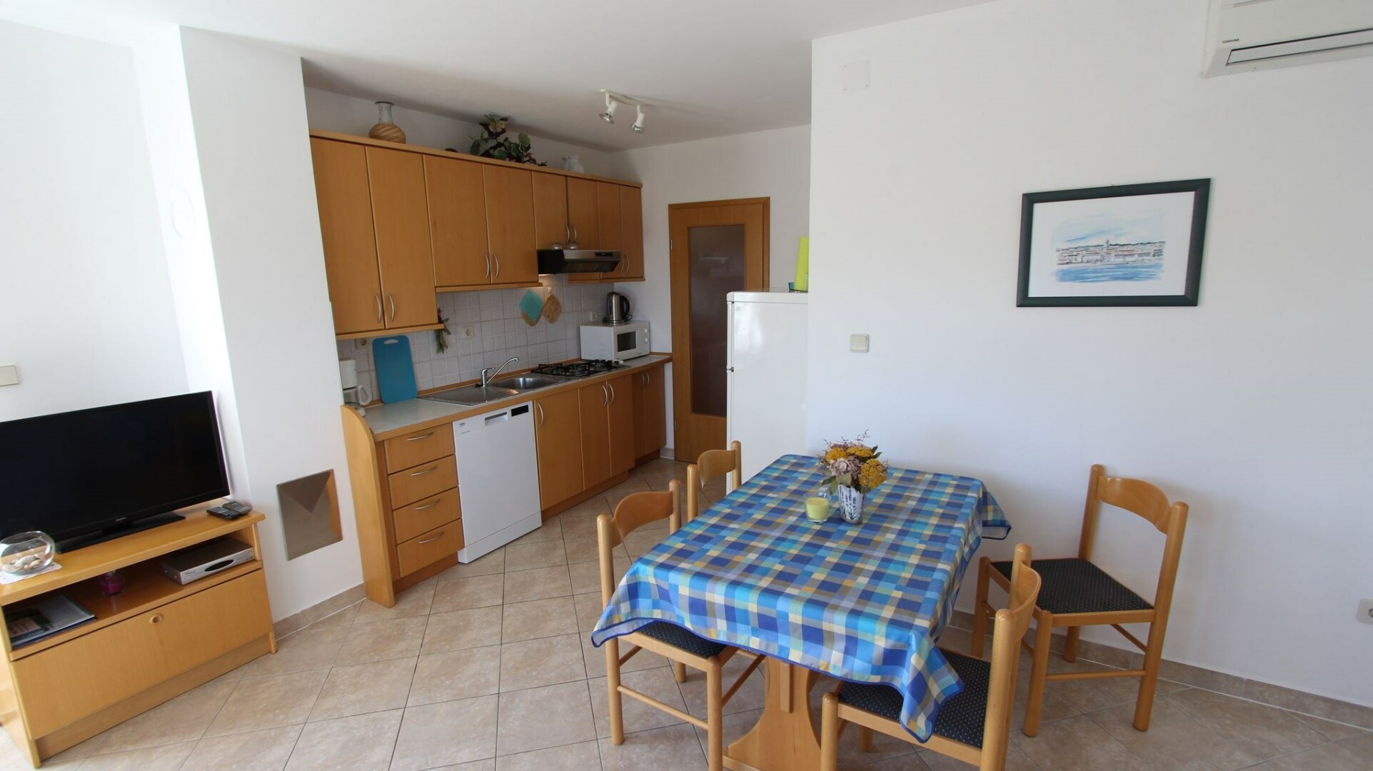 Pěkný apartmán v patře apartmánového domu, 2 km od Jaderského moře, na ostrově Krk v Chorvatsku.