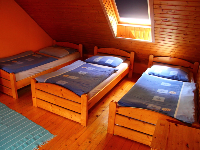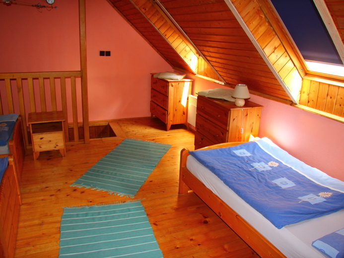 Wyposażona kuchnia (płyta ceramiczna, 2x lodówka z zamrażarką, kuchenka mikrofalowa z grillem, czajnik elektryczny), salon z kominkiem z wkładem kominkowym z rozprowadzaniem gorącego powietrza, LCD-SAT i stół jadalny, 2 sypialnie na poddaszu (1/3, 1/4), łazienka z prysznicem i WC, ogrzewanie łączone (gorące powietrze, elektryczne). Oddzielny pokój wellness (basen SPA, sauna, prysznic i toaleta) - za opłatą. Otwarta przestrzeń, zadaszona część wypoczynkowa pod parasolem, zadaszony oświetlony taras, przenośny grill. Parking przy obiekcie, zwierzęta za dodatkową opłatą. Możliwość przechowywania rowerów i nart.
