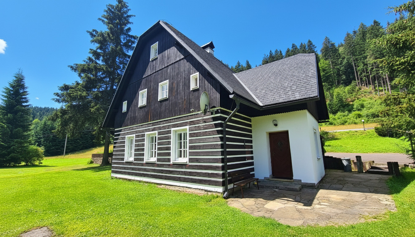 Stylowa, dobrze wyposażony domek z basenem, ukryty w lesie w pobliżu wsi Podlesí - Neratov niedaleko polskiej granicy, około 30 km od Rychnov nad Kněžnou w Góry Orlickie.