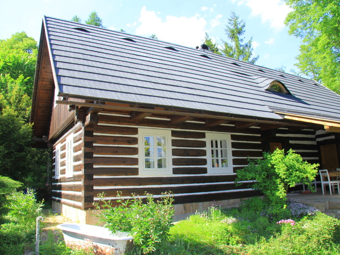 Prestiżowy drewniany domek z wpuszczone zadaszony basenem z podgrzewaną wodą morską w odległej części lasu, 4 km od Hruba Skala, 20 km od Jicin aquapark w Czeskim Raju.