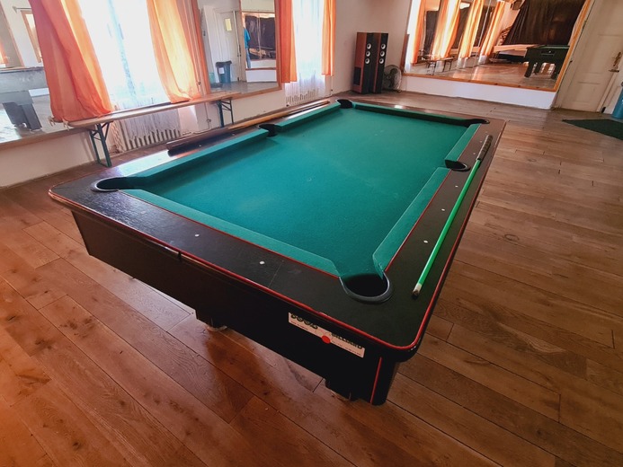 - Großer Saal 120 m2 (Farblicht, professionelle Musikausrüstung, Projektor, Billard, Kamin) - gegen Gebühr