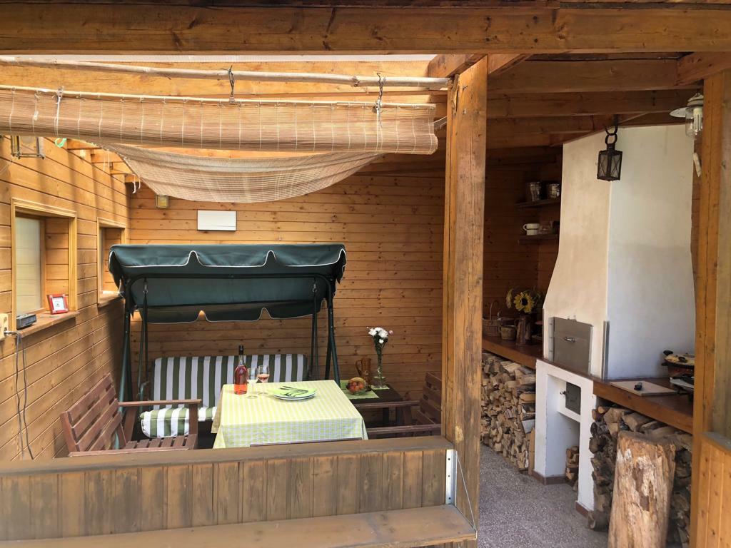 - ausgestattete Küche (Elektroherd mit Backofen, Kühlschrank, Gefrierschrank, Mikrowelle, Geschirrspüler, Wasserkocher, Kaffeemaschine) verbunden mit dem Wohnzimmer mit Kamin, LCD-O2-TV, HBOmax und Netflix und mit Zugang zu einer überdachten, beleuchteten Terrasse