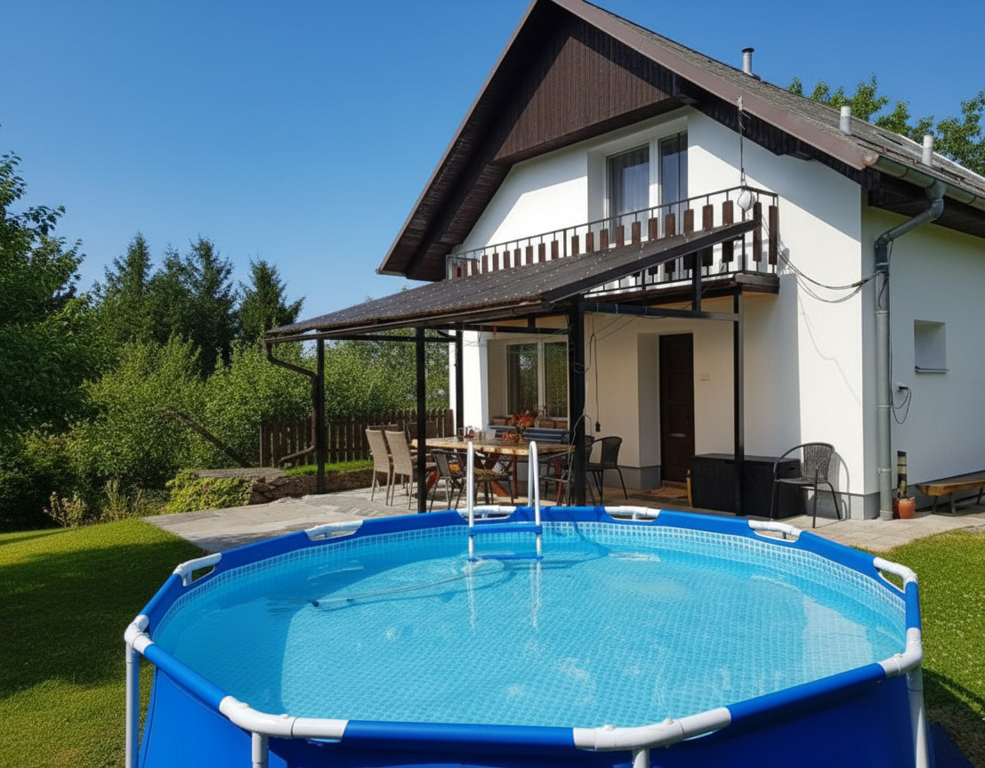 Nicely equipped cabin with swimming pool on a secluded place above the village Hradiste, in a touristic interesting area of Iron mountains, 2 km from public swimming pool and village Nasavrky, 12 km from water reservoir Sec in eastern Bohemia.