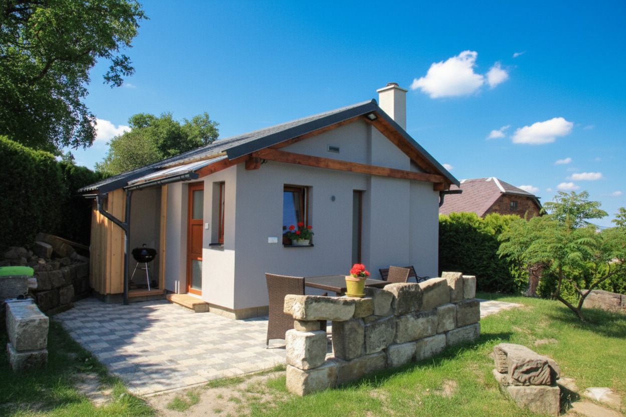 Small attractive holiday house with swimming pool, below Frydstejn castle in a small complex of 2 separate houses, 7 km from Mala Skala in the Bohemian Paradise.