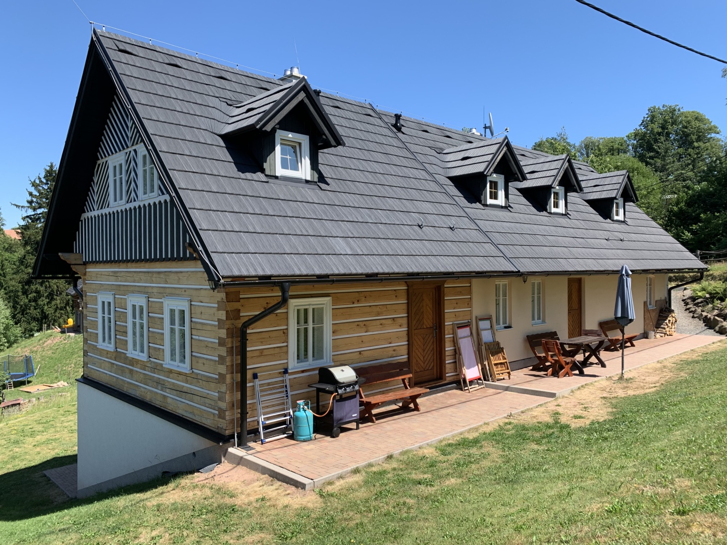 Very attractive half timber cottage with covered swimming pool at the garden situated in the ranch area, 5 km from Benesov by Semily and 13 km from Jilemnice on the border between Bohemian Paradise and Krkonose.