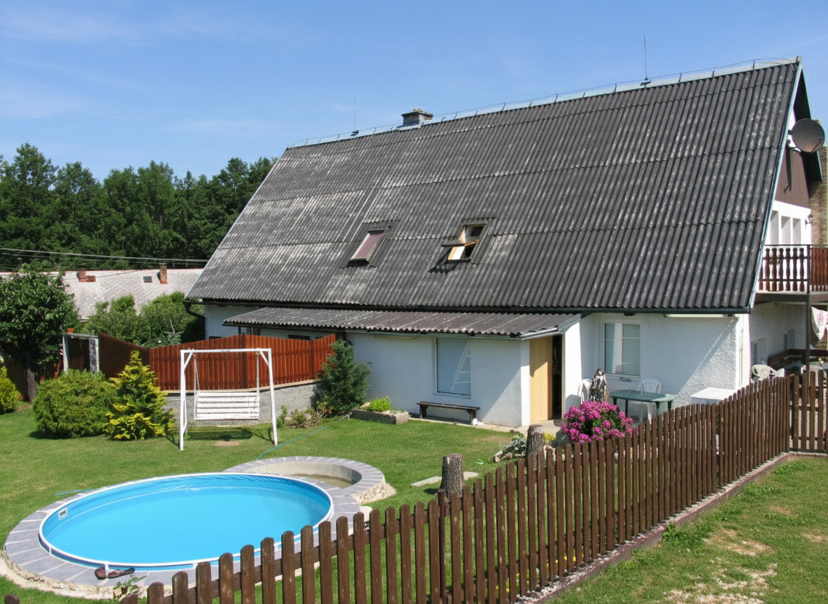 Pěkná a upravená chalupa se zapuštěným bazénem na okraji malé obce Skorošice, 3 km od Žulové a 20 km od Jeseníku v Rychlebských horách.