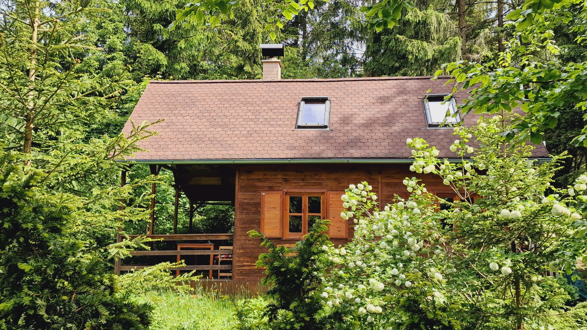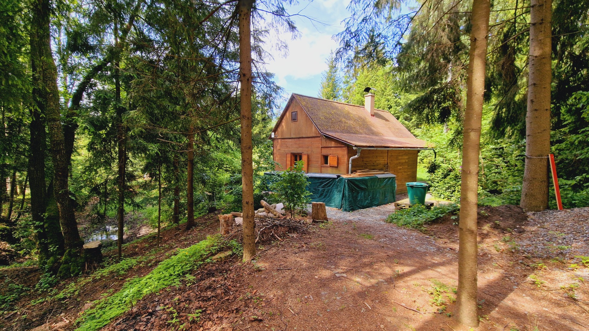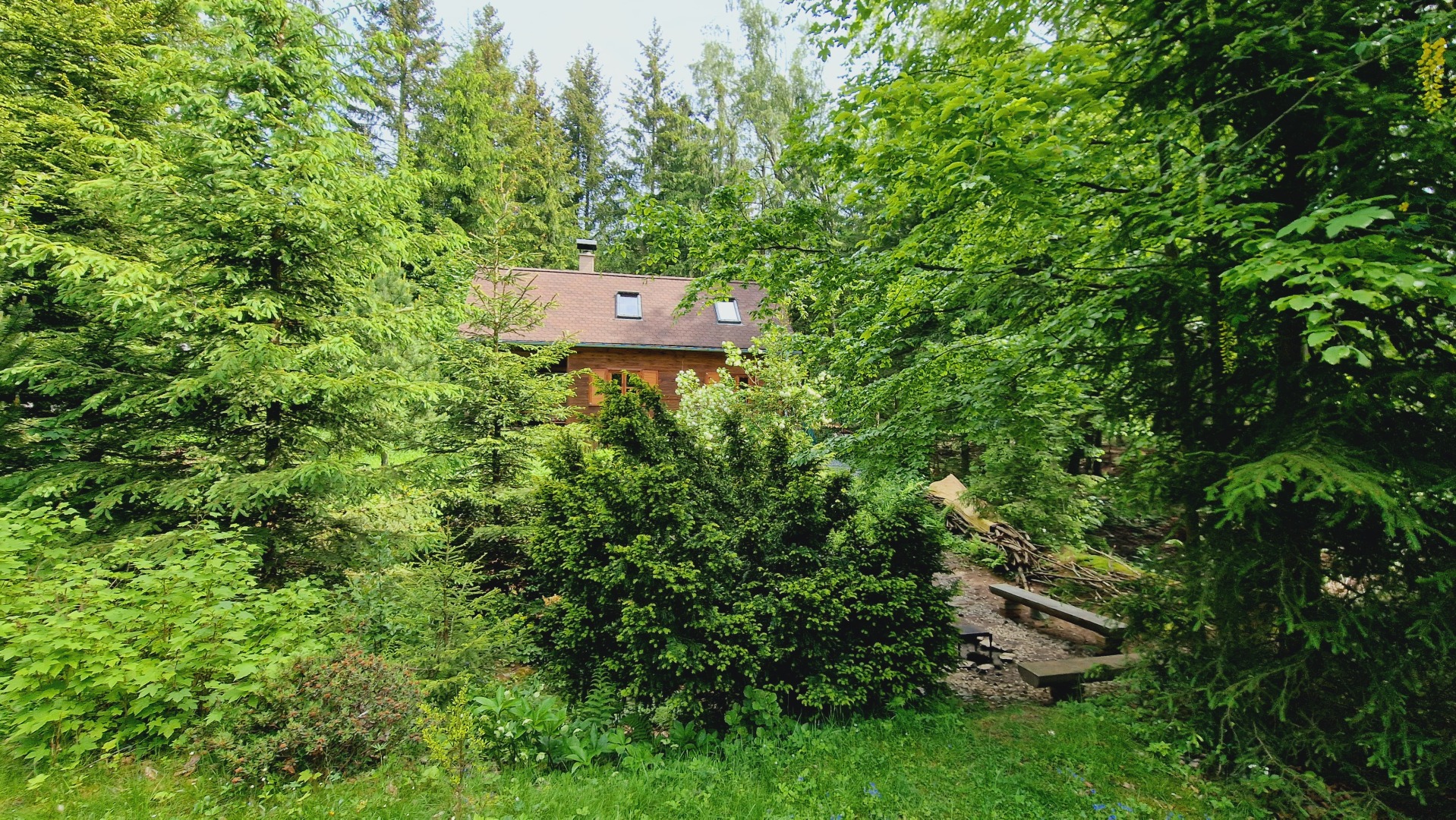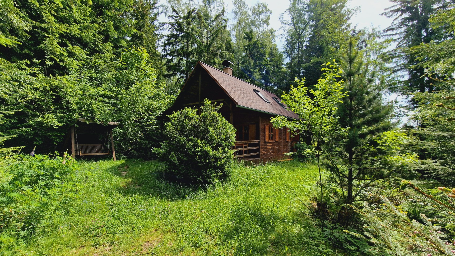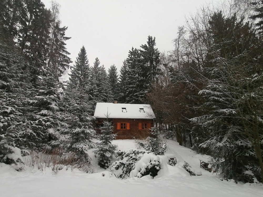 Dřevem obložená, útulná chata na okraji malé rekreační osady, mezi lesy, 1,5 km od Vysočina Arény, 2 km od Nového Města na Moravě a 20 km od westernového městečka Šiklův Mlýn na Českomoravské Vysočině.