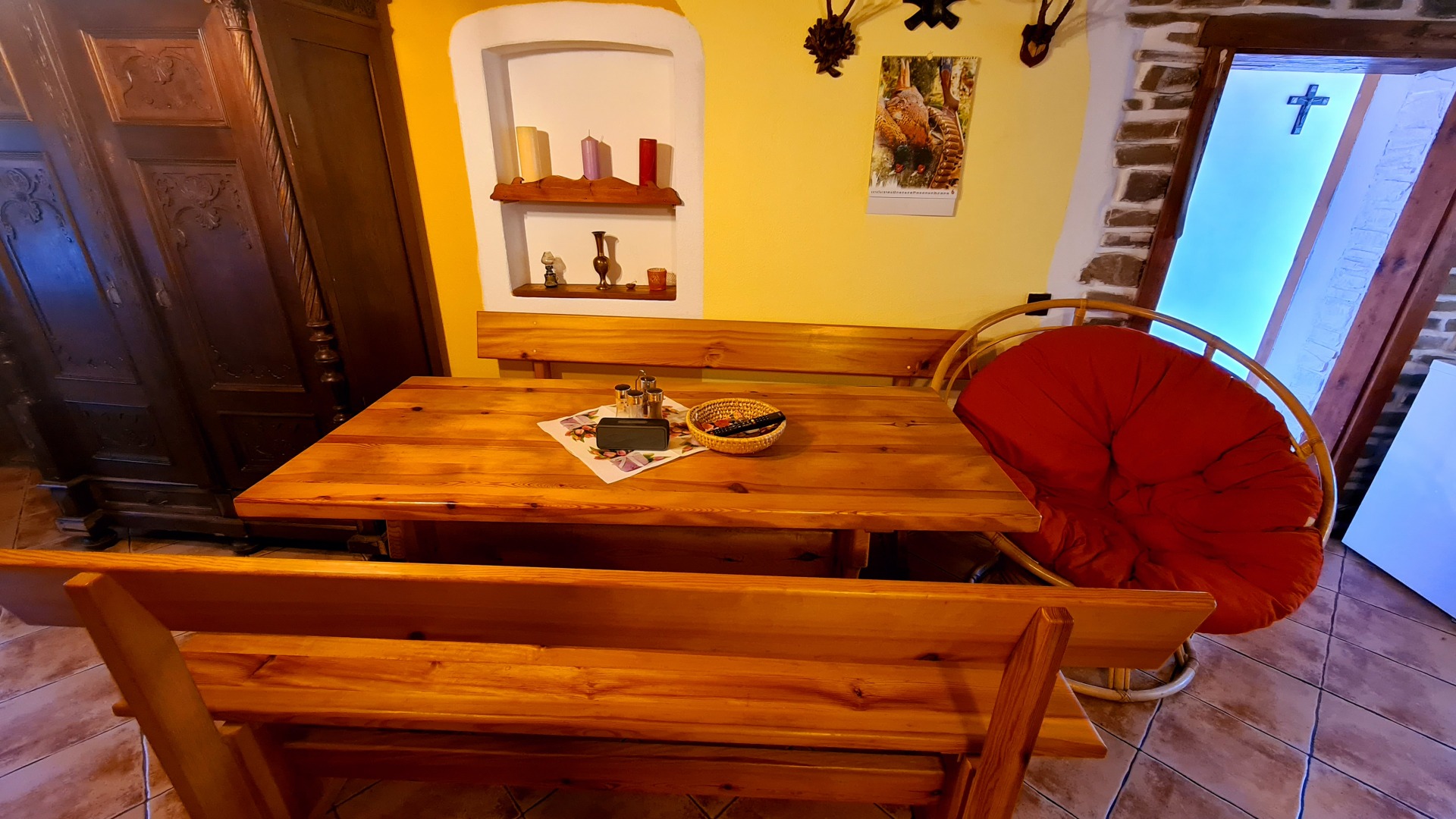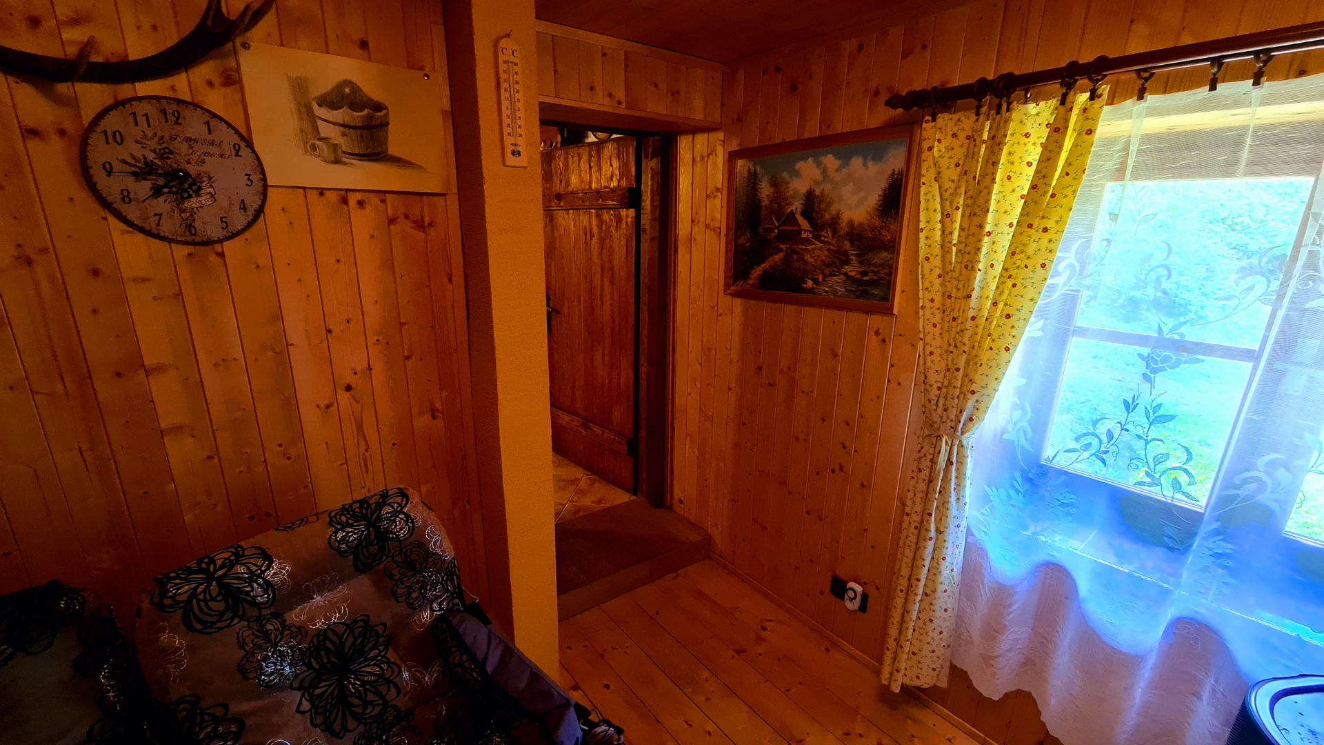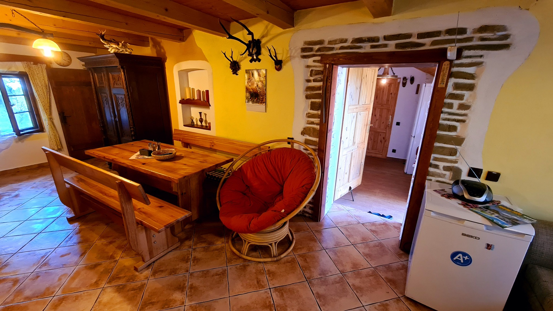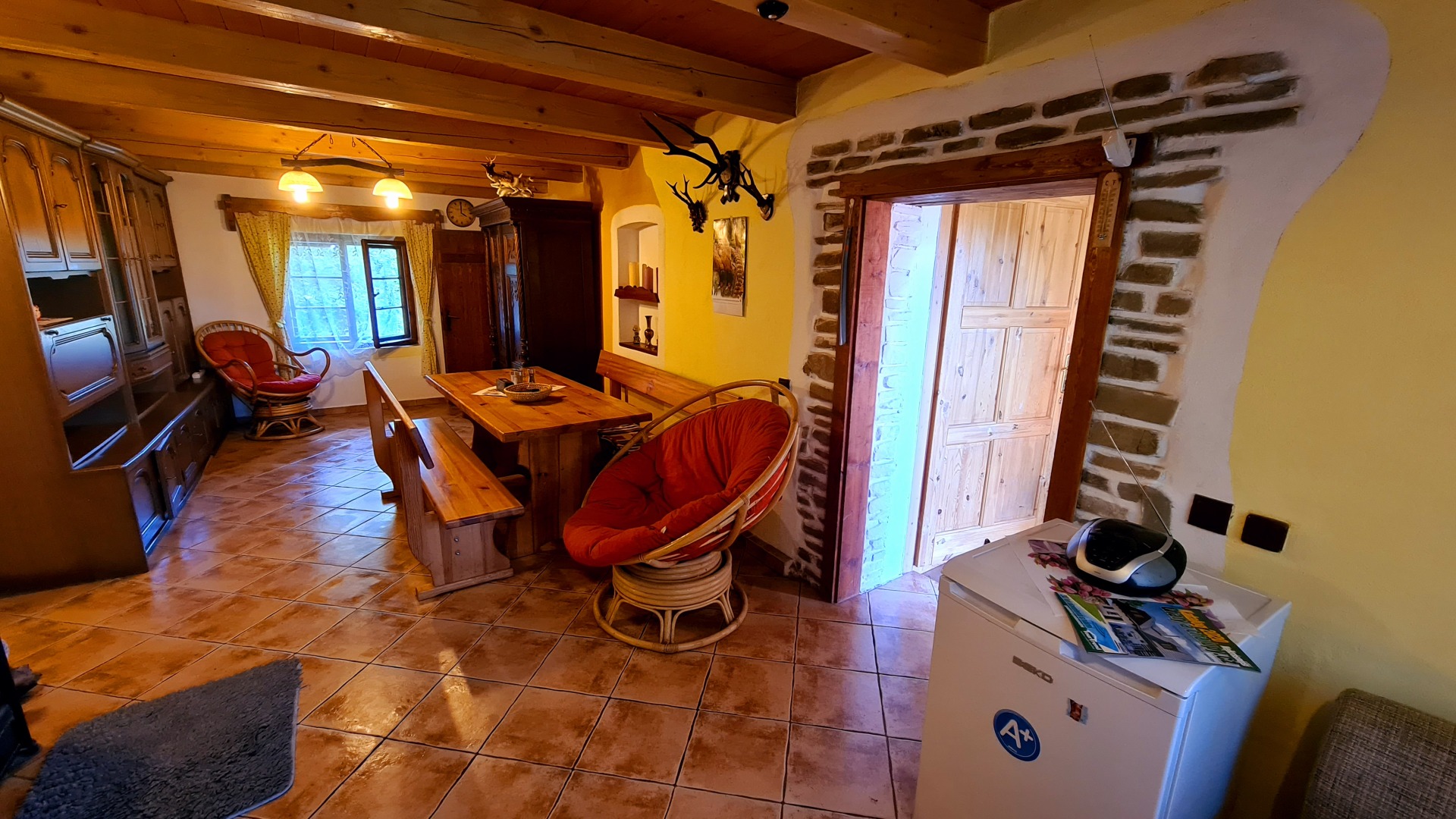- kuchyňská linka (el. 2plotýnkový vařič, sporák na tuhá paliva, lednička s mrazákem, mikrovlnná trouba, rychlovarná konvice, pákový kávovar na espresso)