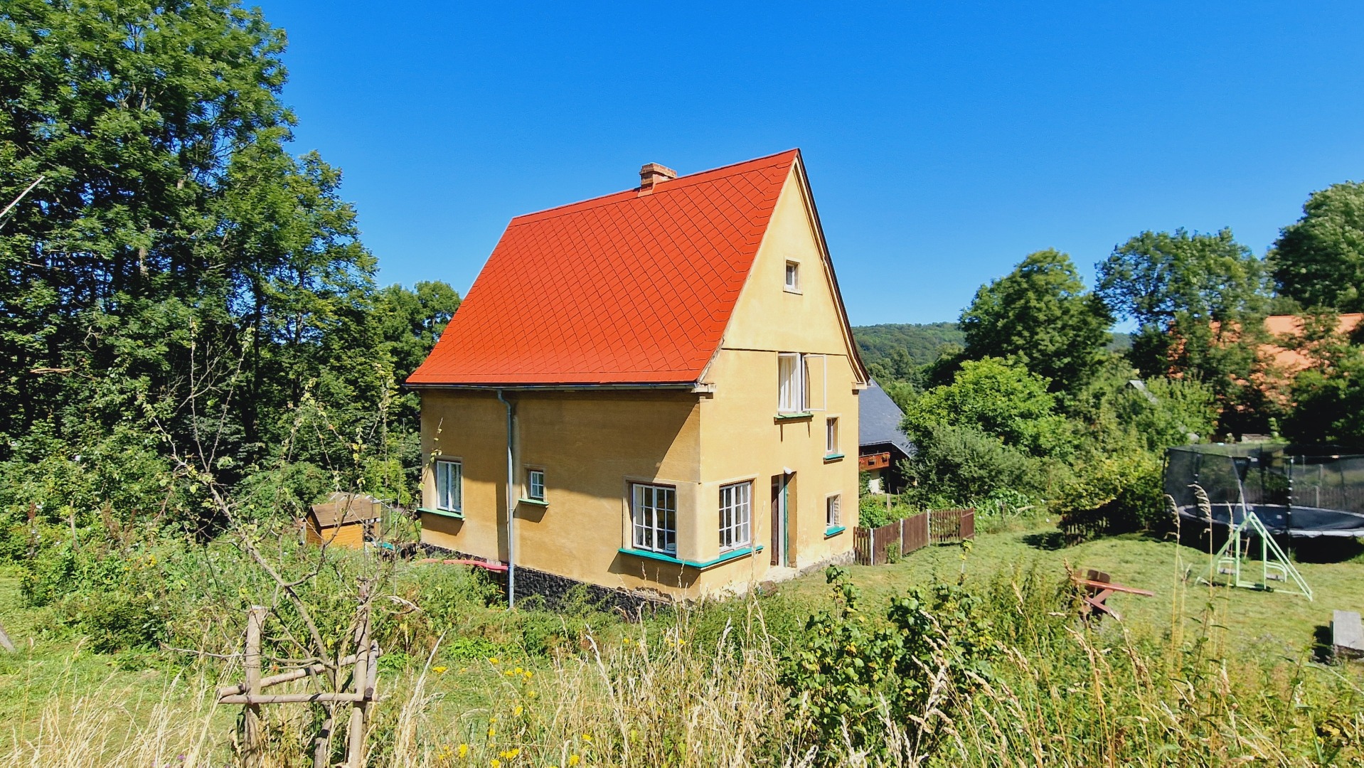 Zděná vilka v areálu farmy (památkově chráněný soubor staveb ekologického hospodářství), pod Strážným vrchem, 20 km od České Lípy a 20 km od Děčína v CHKO České středohoří.